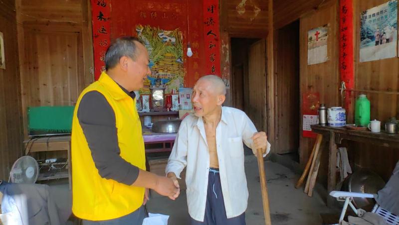 志愿者一行抵达平里镇后,根据前期摸排确定的困难残障老人名单,分头入户上门进行走访慰问。在贵溪村石一组,77岁的残障老人激动地紧握志愿者的双手,热泪盈眶,再三感谢大家在双节前夕远道而来,给予他温暖与关怀。这份真挚的情感,正是对志愿者们无私奉献初心的高度认可与回报。