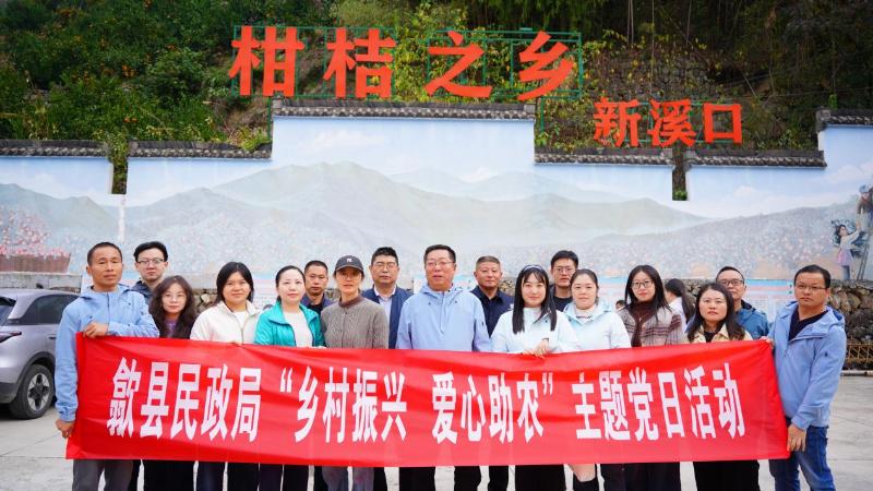 2025年11月13日,歙县民政局组织党员干部赴新溪口乡开展“乡村振兴、爱心助农”主题党日活动暨工会秋游活动,推动了乡村振兴与消费帮扶。