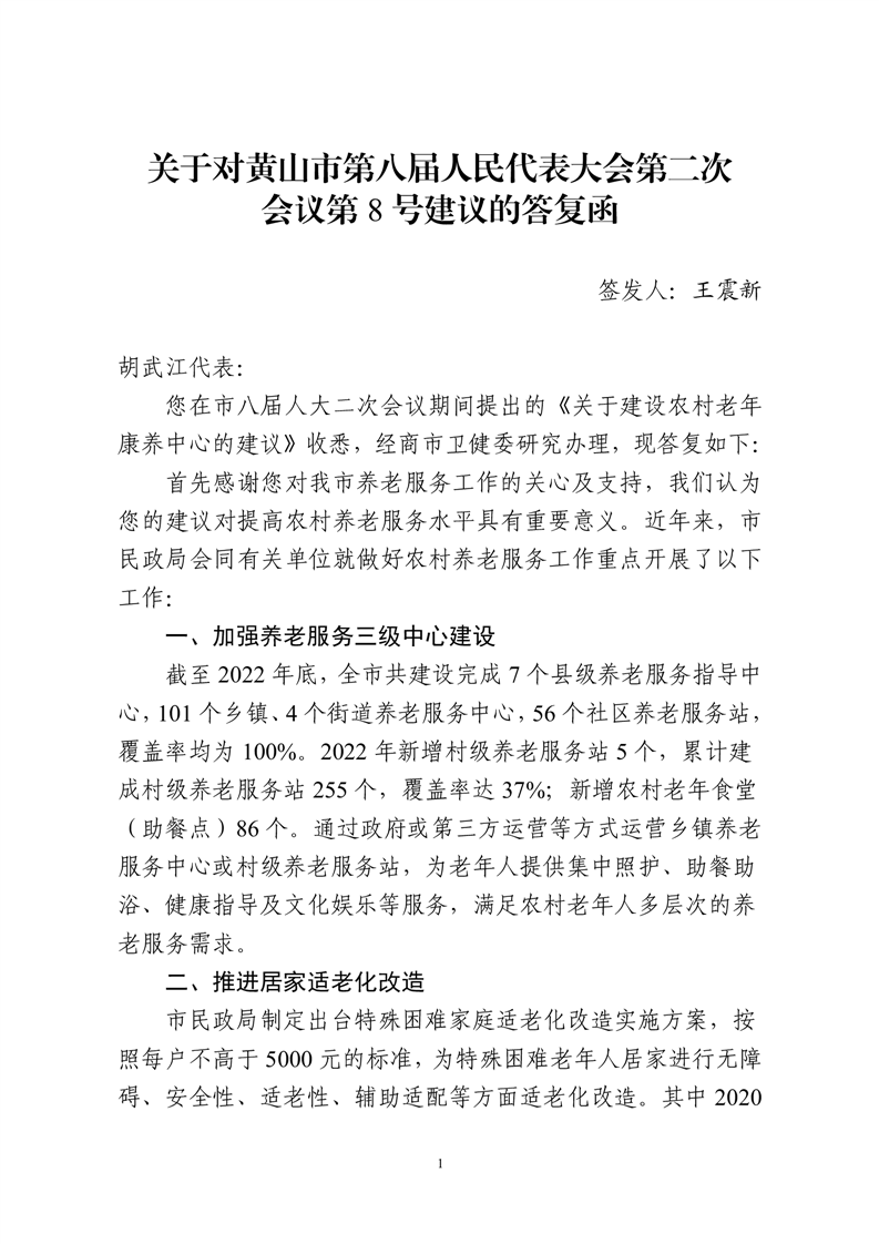 关于对黄山市第八届人民代表大会第二次会议第8号建议的答复函