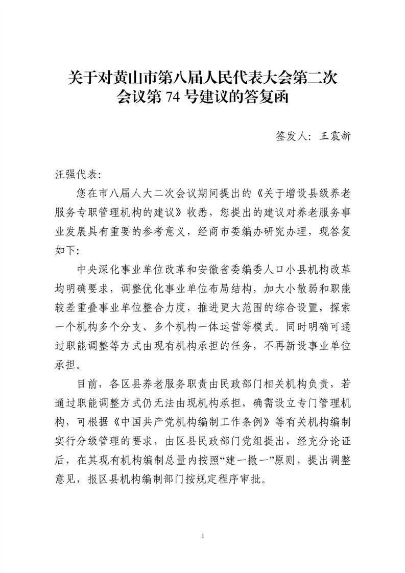 关于对黄山市第八届人民代表大会第二次会议第74号建议的答复函