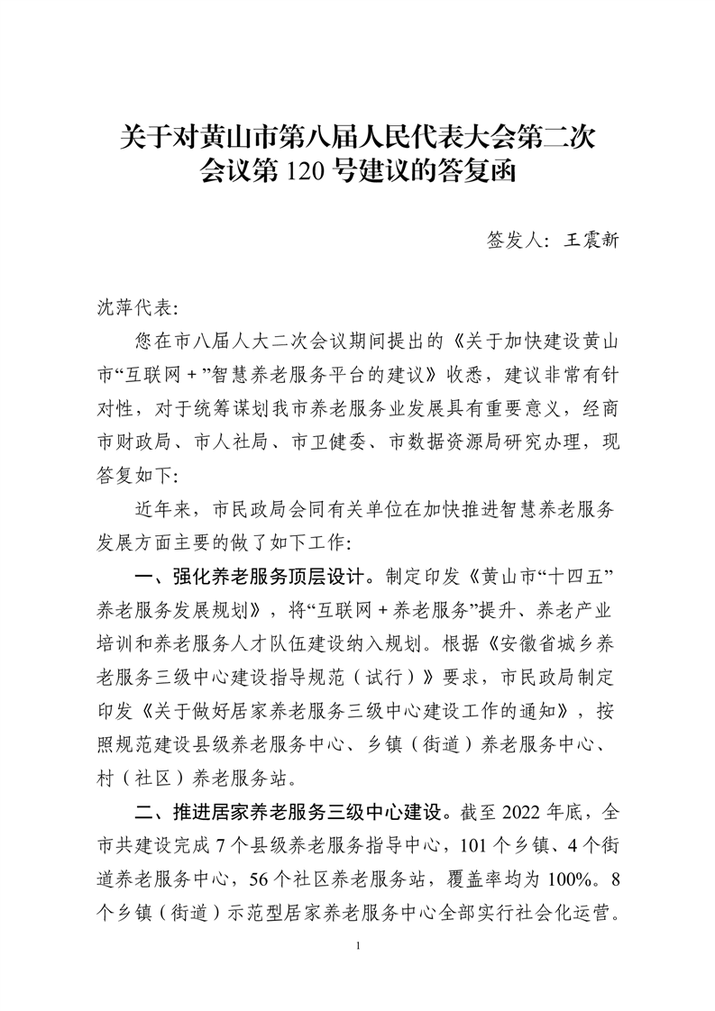 关于对黄山市第八届人民代表大会第二次会议第120号建议的答复函