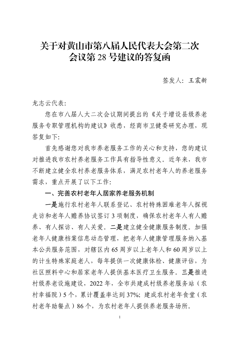 关于对黄山市第八届人民代表大会第二次会议第28号建议的答复函