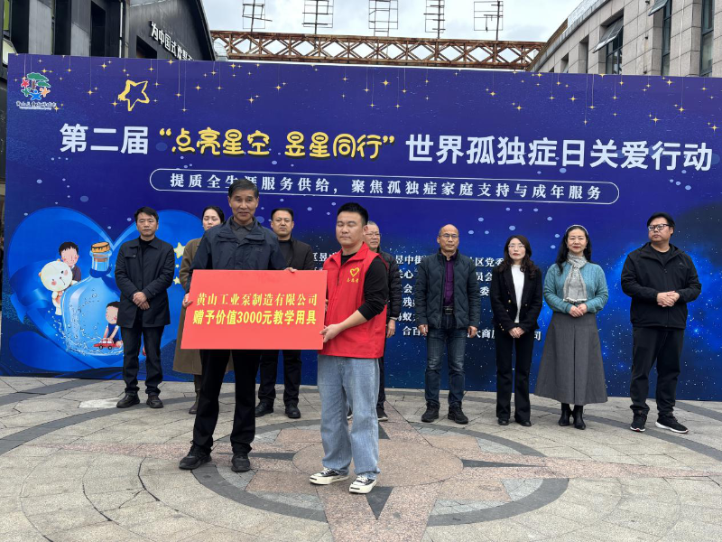 活动中,市民政局指导基层单位整合康复机构、群团组织、爱心企业、志愿者等多方资源,现场设置科普展示、专业咨询、互动体验三大功能区,为孤独症困境儿童提供免费康复指导、行为干预咨询,同时解读民政救助、民生工程等帮扶政策,精准对接家庭需求。精准链接黄山工业泵制造有限公司为孩子们送上价值3000元的学习用品、康复教具等物资,通过融合手作、趣味闯关等互动形式,让孩子们在陪伴中感受温暖。